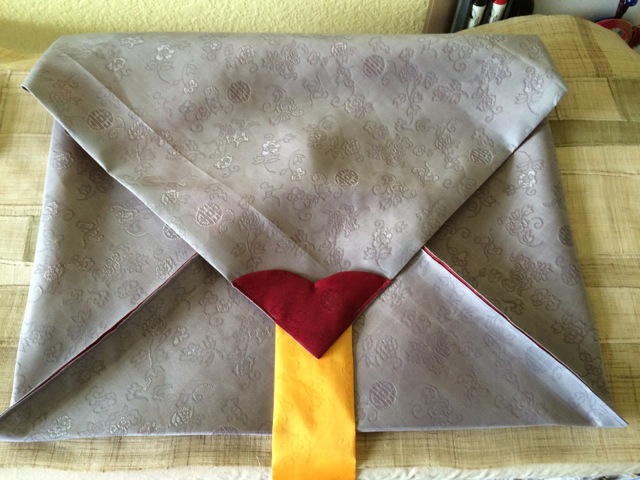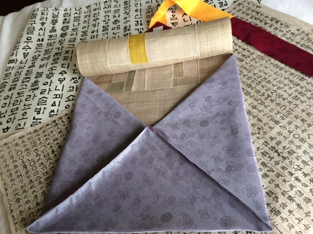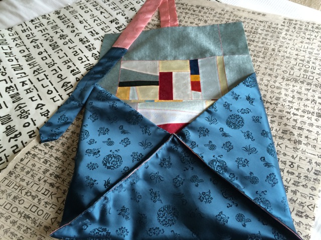 When I deliver these bojagi to her, I wrapped them in bojagi shaped like a pouch. Bojagi in a bojagi.