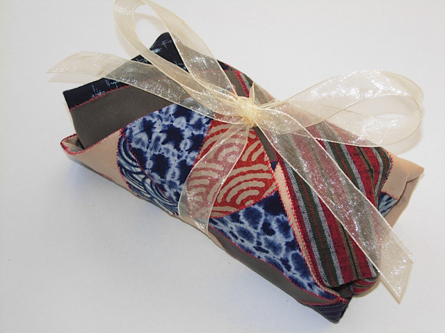 When I finished my DVD, she bought one copy and gave me a long and detailed feed back. I do bojagi because I love to do it however these compliments are making me happy and think about responsibility of keeping this art form as my life time mission. This time, she sent me pictures of her own creation. gift wrap bojagi for her friend. She used her own choice of fabrics and design but I was smiling when I saw her Gamchimjil (whip stitch) throughout her bojagi. Contrasting colored stitches are distinctive detail of bojagi!