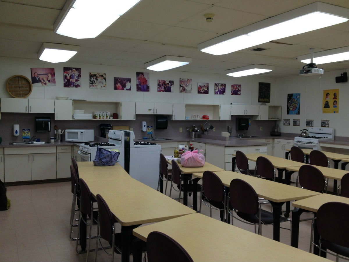 Saturday morning, I loaded my rice cooker, cooler-ful of vegetables and sauces in my car trunk. When I arrived at Castro valley Adult school, well equipped culinary classroom was waiting for me. Room 9 has 3 stoves, 3 double sinks and spacious counter tops. Big shelf was filled with pots, pans, cutting boards and different sizes of mixing bowls. I was happy to have these big recycle bins in the room so we can throw all the food scraps.