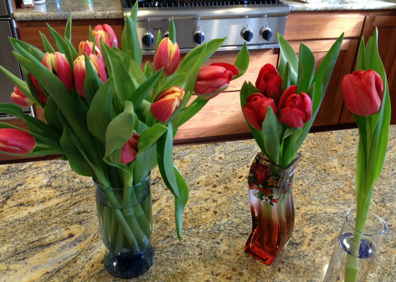It has been busy week so far. Finish writing class proposals for both Bojagi and cooking class, went to see my wonderful hair dresser, Sandra for hair cut (I have shorter hair now for the bike season!), taught Bojagi class at home ( thanks to Helen for beautiful tulip bouquet and a yummy coffee cake!), prepare some Maedub cord for Elizabeth ( thanks to Sujin for beautiful tulips, too!), went to Santa Clara for Lunar New Year preparation grocery shopping and just finished making helmet bags and munch boxes for my fellow Eden Road Divas.