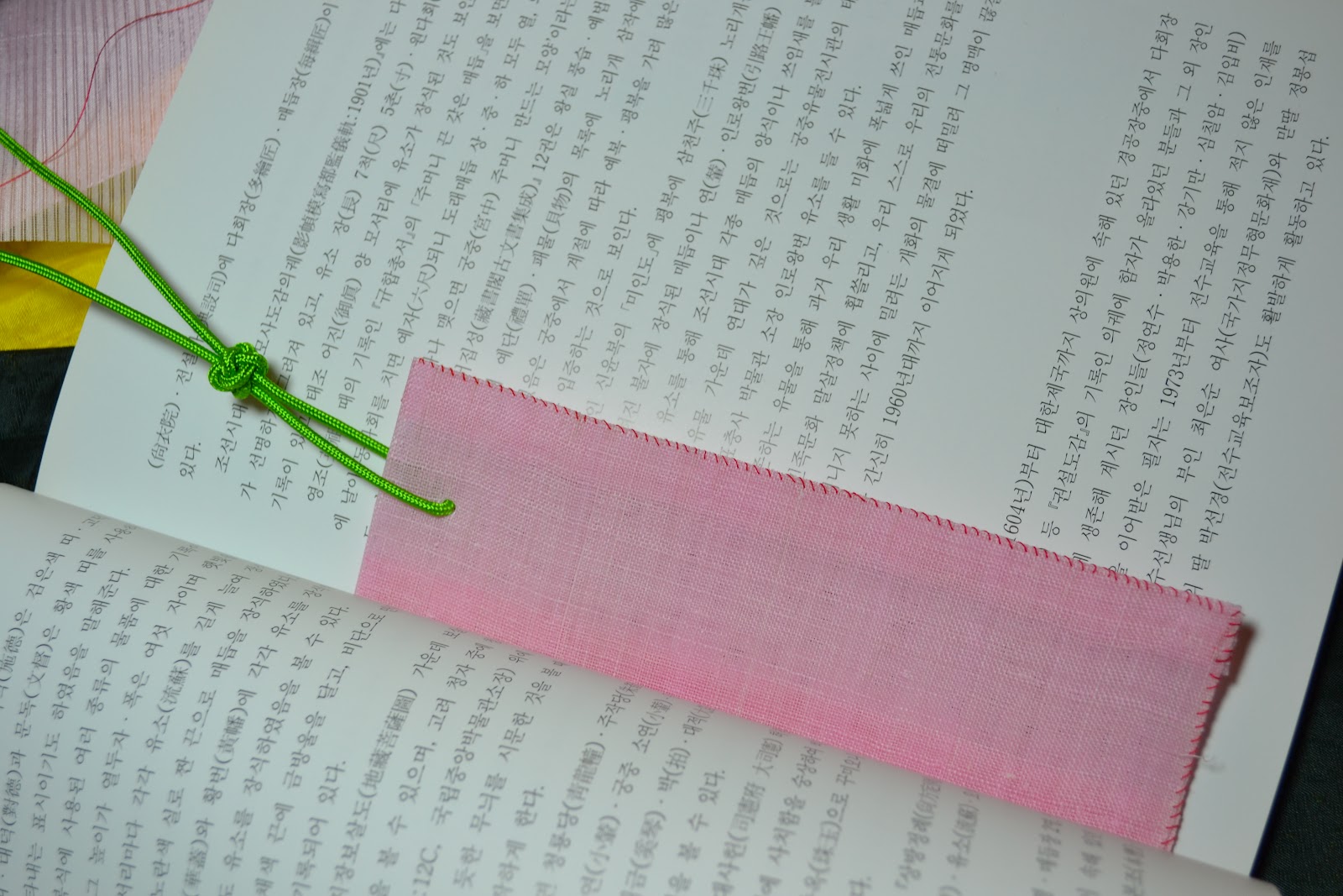 세번째 작품은 예쁜 연봉 매듭을 달고 모시로 만든 책갈피.