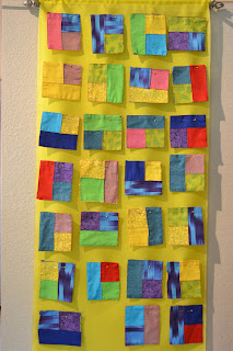 I imagine kids cut and sew pieces of the fabric during the summer break to make their own bojagi.....