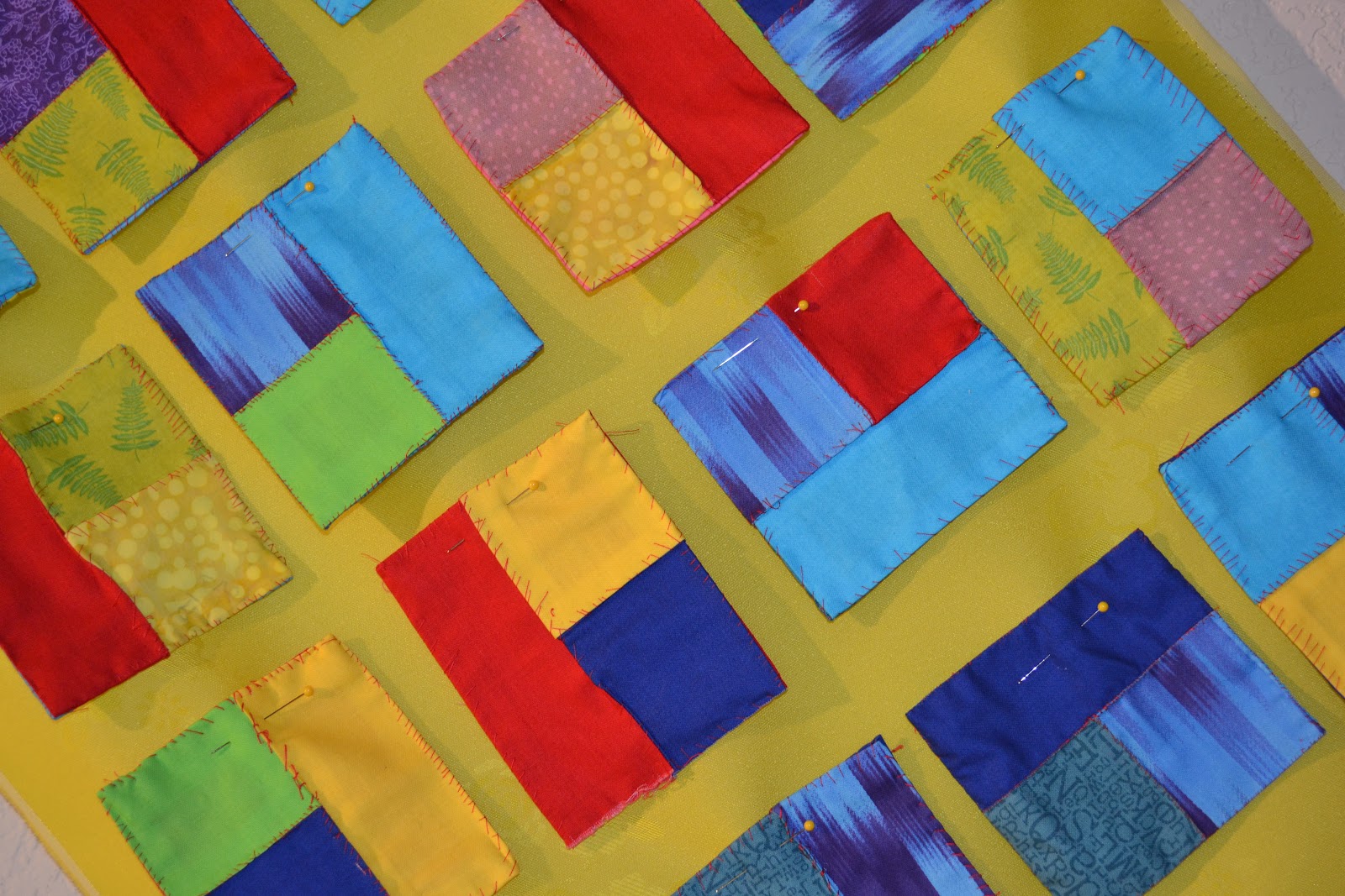 I chose bright colors of cotton and started to cut them into small squares and rectangles.