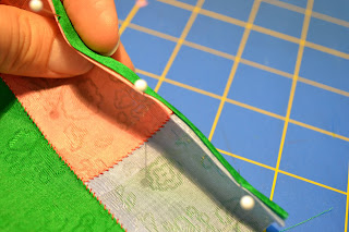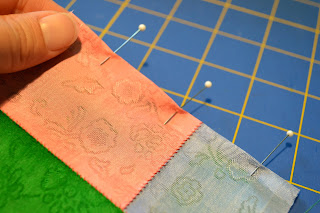 Put 2 pieces(A+B) of the fabric together from the outside and pin them.