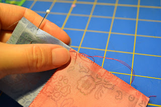 Make Bakji( bat figure) with 2x2 inch square fabric. I ran out of time.... so Alice, check my older posting about Bakji! and sew on the corner of pin cushion :)